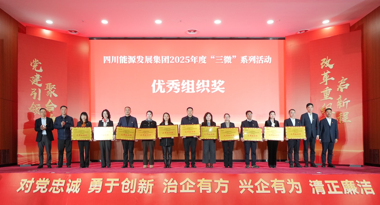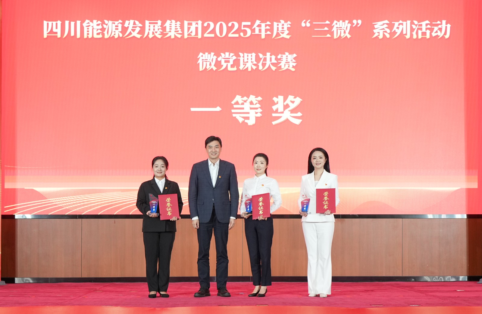1月22日,四川能源发展集团“党建引领聚合力・改革重组启新程”2025年度“三微”系列活动微党课决赛,在集团总部圆满落幕。川投能源基层理论宣讲“睿声工作室”骨干成员,川投电力公司党群工作部赵梦婷讲授的微党课《追光之路》,凭借深厚的情感、生动的叙事和鲜明的主题,以全场最高分斩获一等奖。此外,川投能源还包揽了本次微党课决赛的优秀组织奖。集团公司党委副书记、副董事长、总经理邓超为获得一等奖的主讲人颁奖,川投能源党委书记、董事长刘胜金,党委副书记、职工董事、工会主席冉兰平现场观看微党课决赛。
