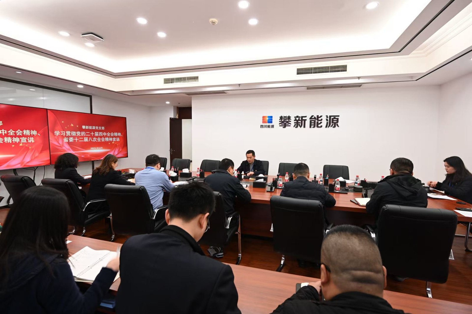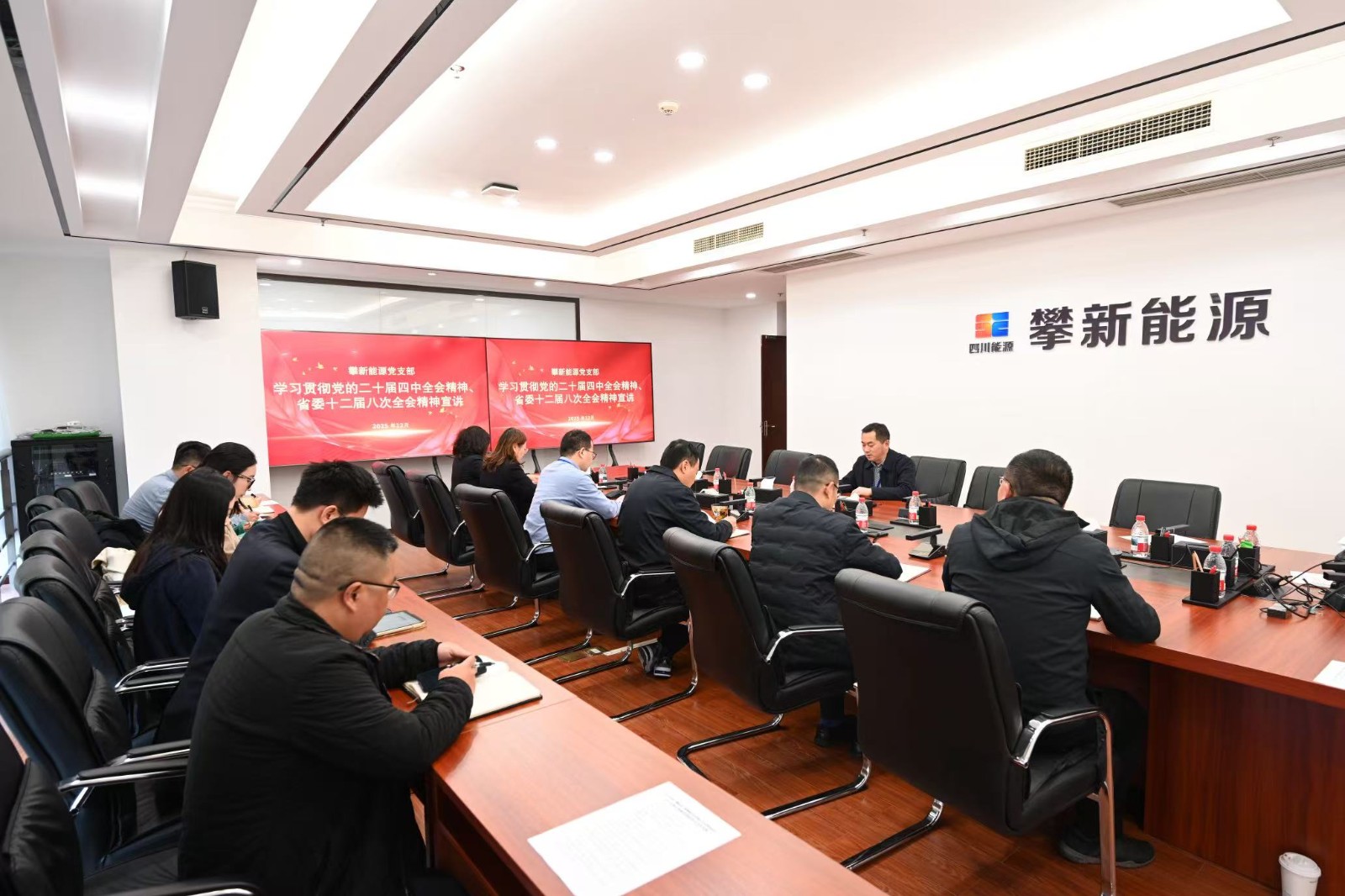 12月22日,攀新能源党支部组织召开全体党员大会,党支部书记、董事长王行仁讲授专题党课,集中宣讲党的二十届四中全会和省委十二届八次全会精神,公司领导班子成员及全体党员、预备党员、入党积极分子参加学习。