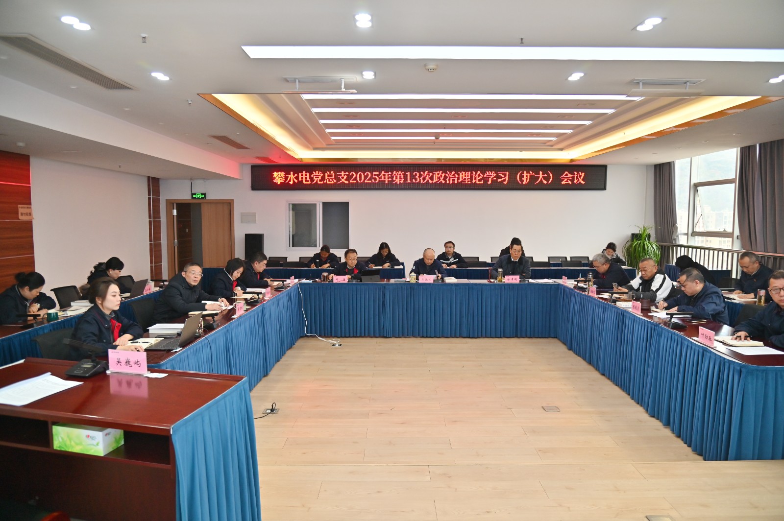 12月25日,攀水电公司党总支组织召开了2025年第13次政治理论学习(扩大)会,会议由公司党总支副书记、总经理吴巍屿主持,党总支政治理论学习会成员、全体中干、统战对象、入党积极分子共计20余人参加。