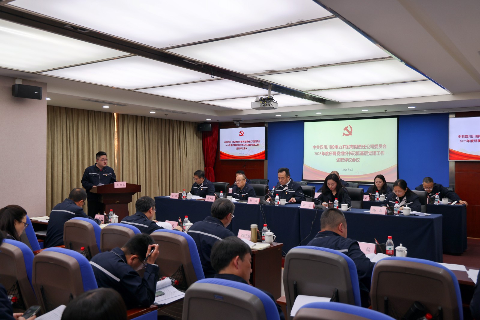 近日,川投电力党委召开2025年度所属党组织书记抓基层党建工作述职评议会议。公司党委书记、董事长杨涛主持会议并讲话,川投能源党群工作部部长黄希到会指导并作点评讲话。