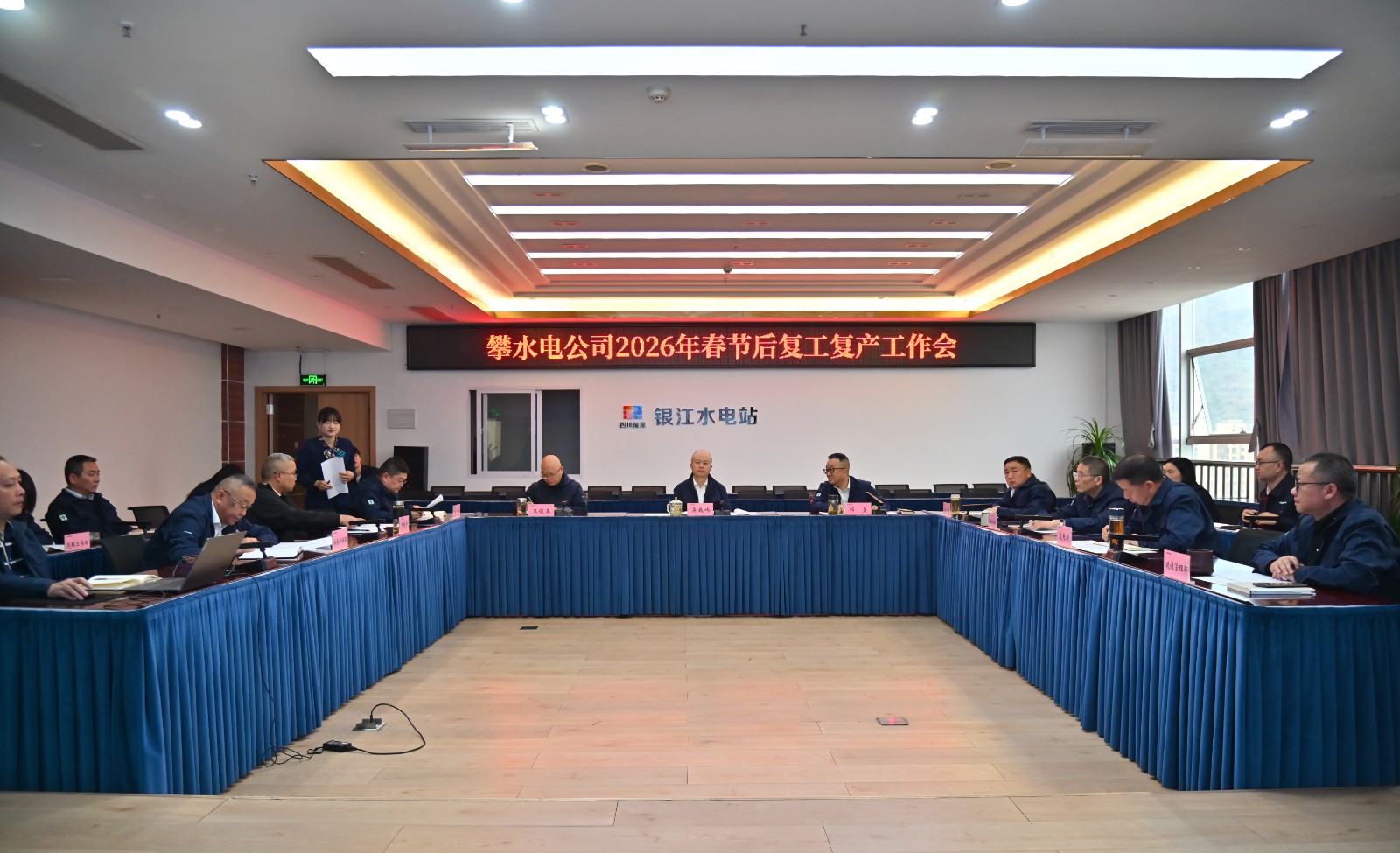 为统筹推进节后复工复产及安全生产工作,2月25日上午,攀水电公司召开春节后复工复产工作会议,全面部署复工复产及安全生产工作,动员全体干部职工迅速收心归位、凝心聚力,为2026年完成各项任务开好头开好局。会议由公司党总支副书记、董事会秘书、工会主席邓勇主持,公司领导班子及各部门负责人参加会议。