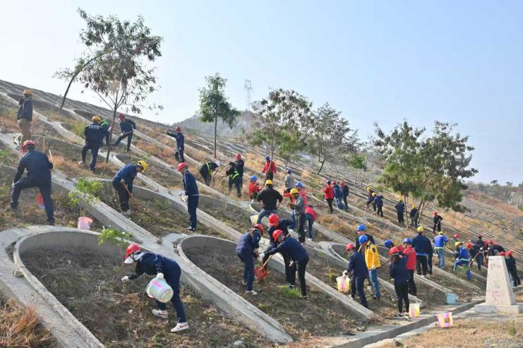 在青衣江畔,川投电力以“党建+生态”模式为抓手,在各厂区同步掀起植树热潮。本部党支部联合百花滩电厂党支部,精准种植22株水源涵养、水土保持类苗木,精心打造“党员先锋林”“青年示范林”,并将植绿护绿纳入党建和生态环保工作台账,落实专人负责后期养护。槽渔滩公司炭素厂26名党员、团员青年及职工群众参与其中,在完成新苗栽种的同时,修整草坪、清理枯枝,让厂区环境焕然一新。高奉山电厂组织党员和团员青年挥锹培土、栽种新苗,对绿化带进行全面清理维护,用劳动践行植绿护绿责任。